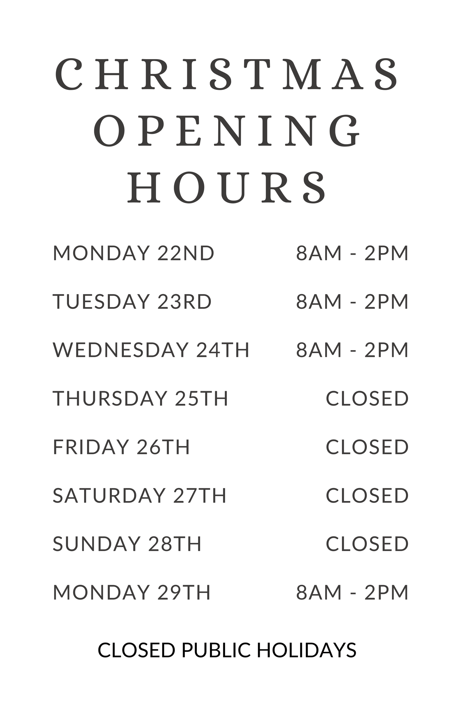 We are happy to be able to stay open all the way up until Christmas eve, to ensure you are able to get your gifts ready in time for Christmas morning. We look forward to seeing you in store and we wish you and your families a very Merry Christmas.