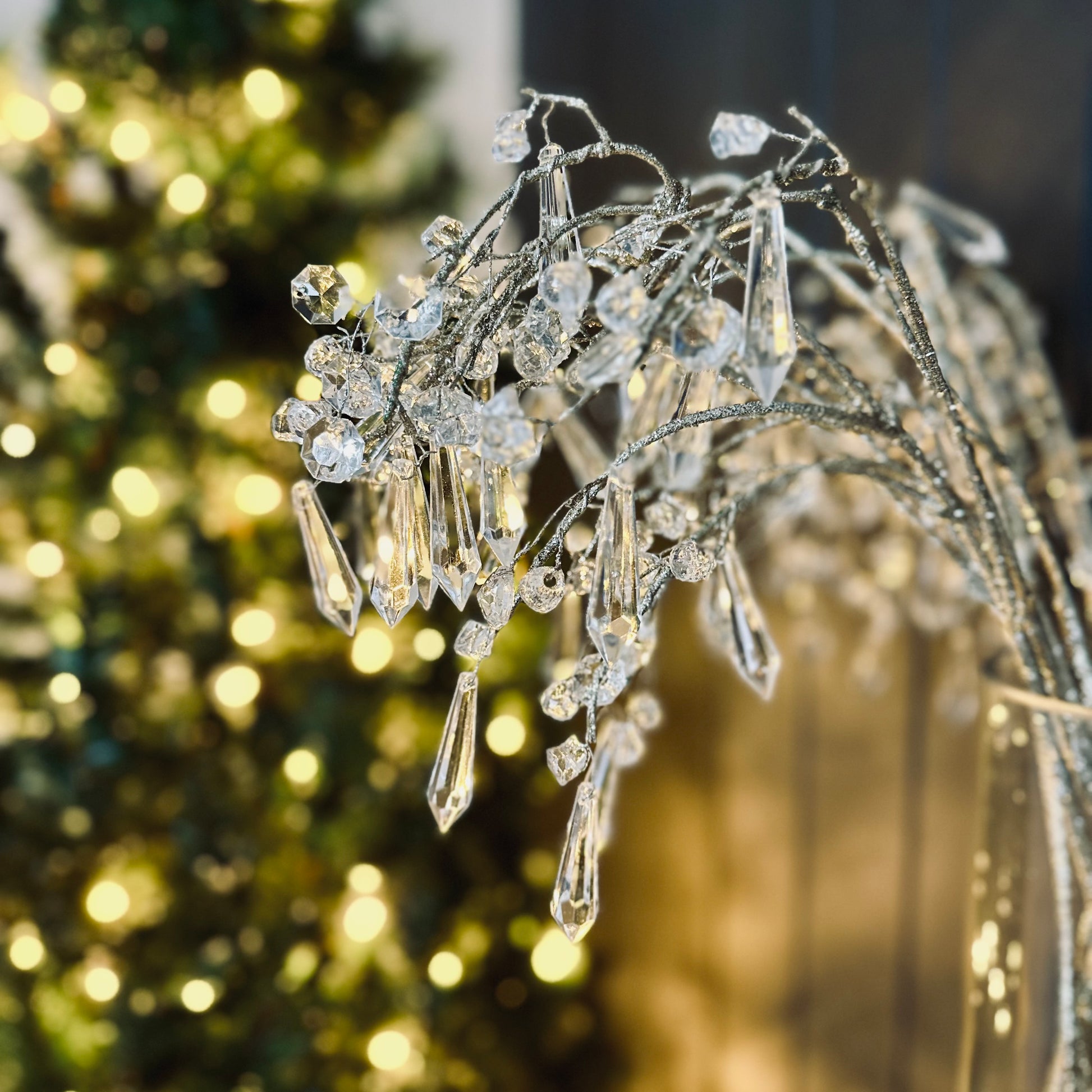 Use this acrylic crystal spray for a sparkling addition to your Christmas tree, festive floral arrangement, or centrepiece. Place this spray next to ambient light for the extra impact of delicately refracted lighting. This spray is well suited to White Christmas, elegant, and modern decor aesthetics.