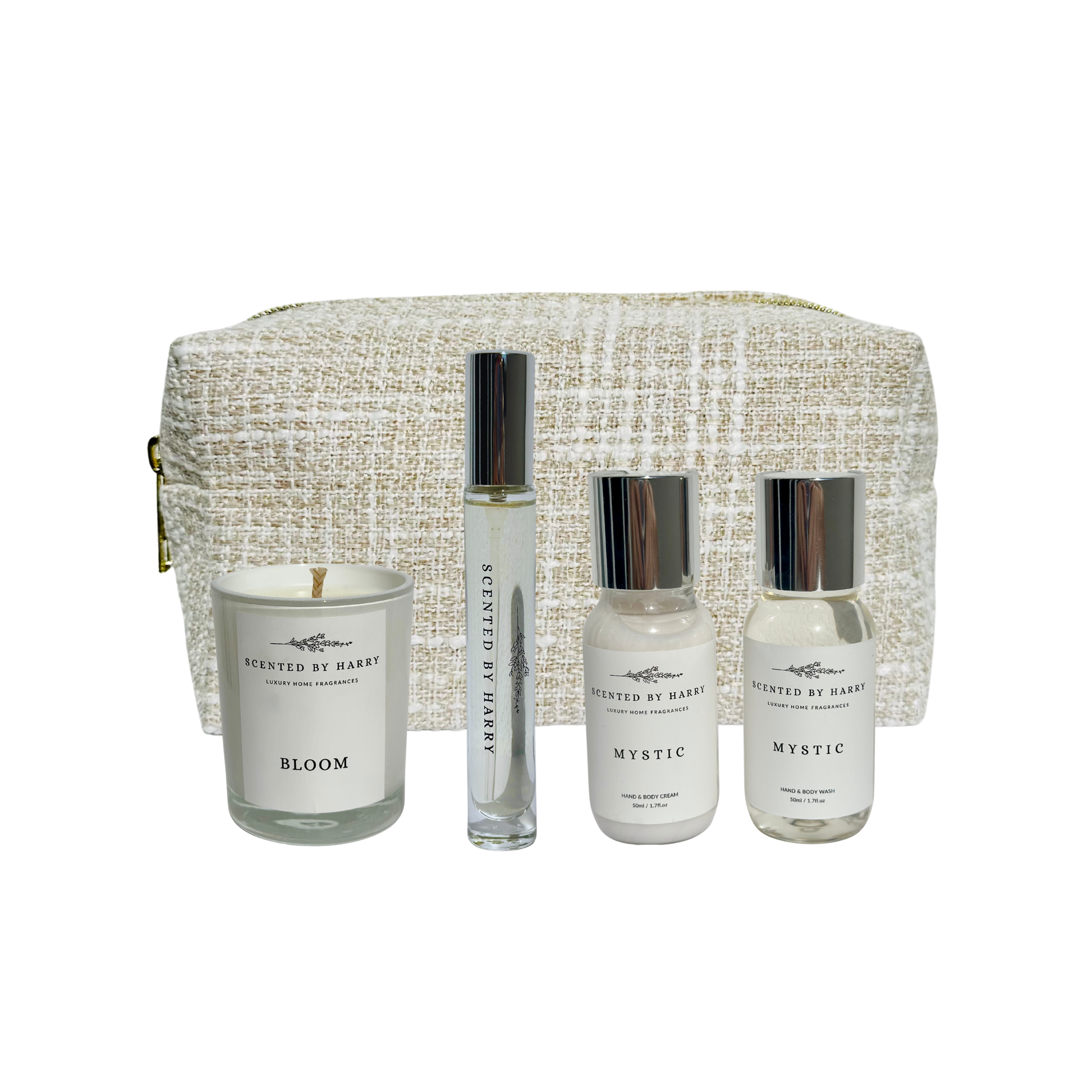 Designed for indulgent escapes and intimate moments, The Travel Gift Set brings a touch of luxury wherever your journey takes you. Featuring our beautifully scented Bloom Candle (70g) to set the mood, the Midnight Home Spray (10ml) for an instant burst of atmosphere, and the Mystic Hand Wash & Hand Cream (50ml) to cleanse and nourish on the go.